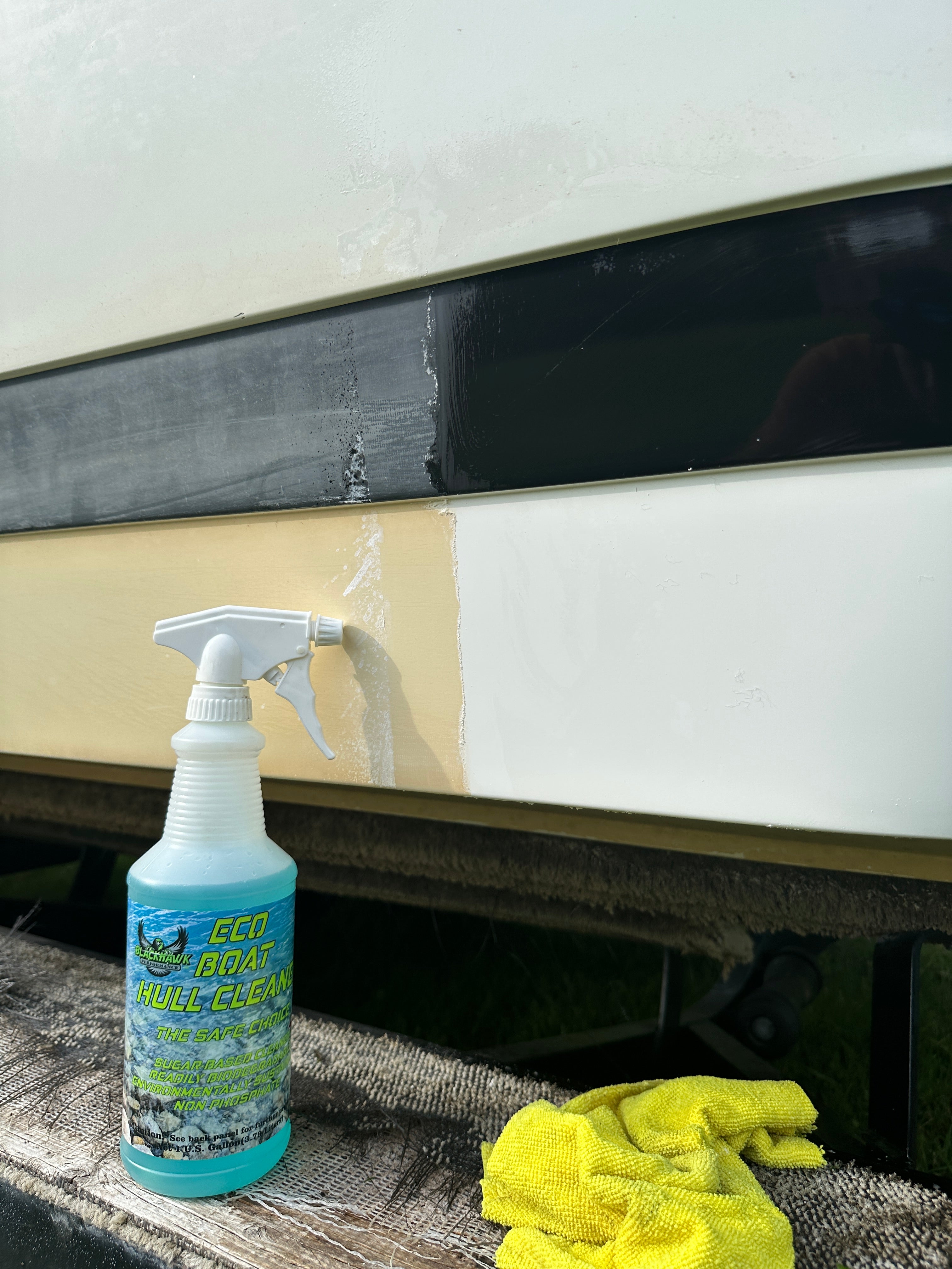 I live on the St Johns River in FL, which is lined with cypress trees. They make the water very brown which stains fiberglass pretty quickly. I left a boat in for half a week and generated the normal scum line on my boat. This is usually very hard to clean, and I wind up resorting to a pressure washer. I know there are plenty of chemical products that will work, but you do not want those flowing into the river. They also can harm your trailer, and or driveway. I sprayed this product on, and within a minute or so wiped it off. It made a small improvement, but nothing great. I sprayed it on again, and let it sit for 5+ minutes, and rubbed it with a bristle brush, then rinsed. It came out clean! This is typically very hard to clean, so if this cleaner can handle that, I suspect it can handle many other challenges. Biodegradable as well, so I recommend.